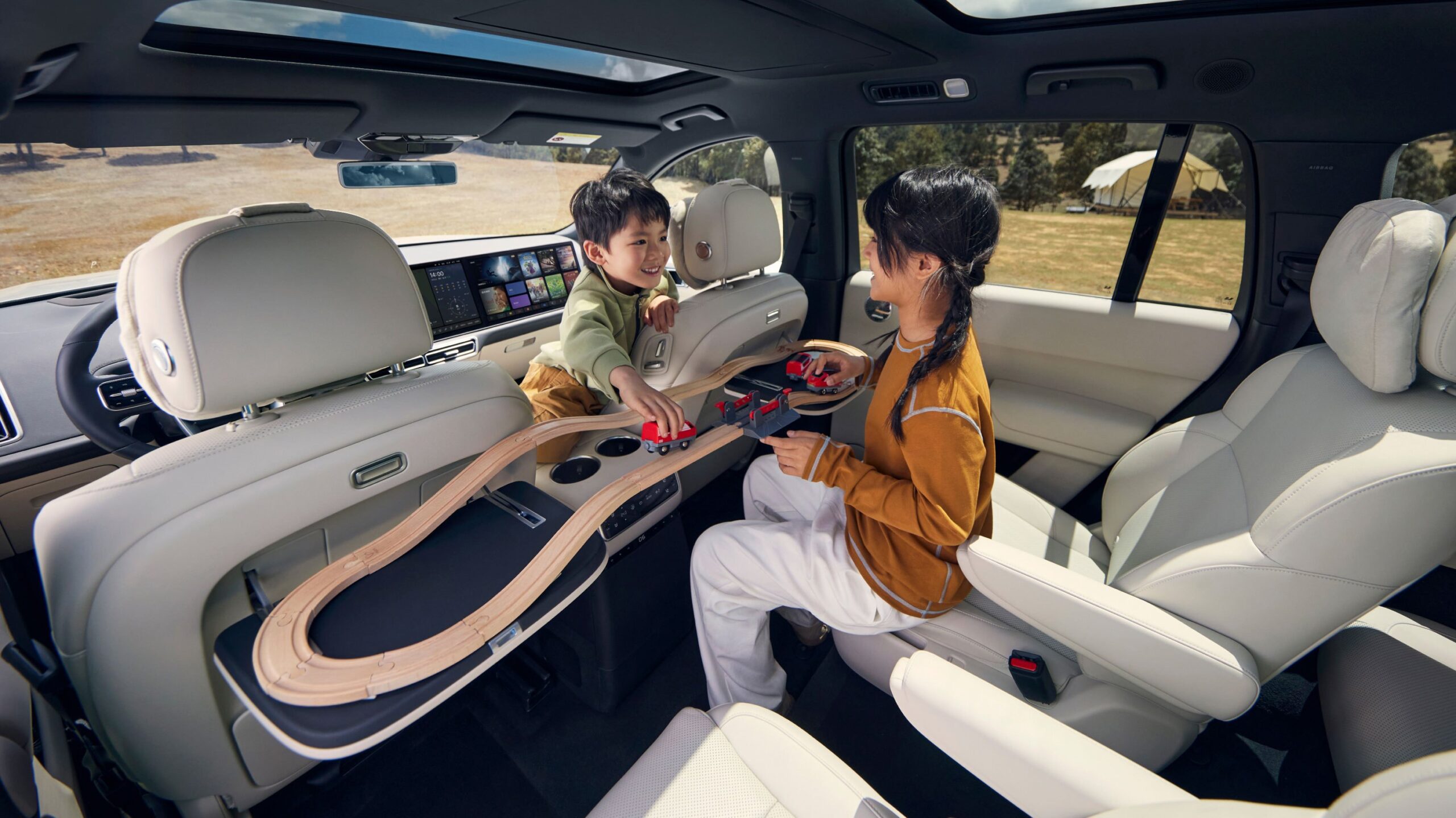 Первый и второй ряды в стандартной комплектации оснащены 18-точечной системой массажа Hot Stone — функцией, которая обычно доступна только в автомобилях премиум-класса. Нагреваемые узлы быстро нагреваются до 45 °C, обеспечивая ультрареалистичные массажные техники, которые снимают всю усталость вашей семьи.